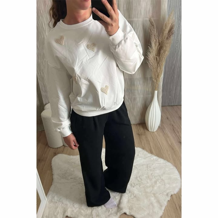 Adoptez la douceur avec ce pull cozy orné de jolie motifs cœurs.